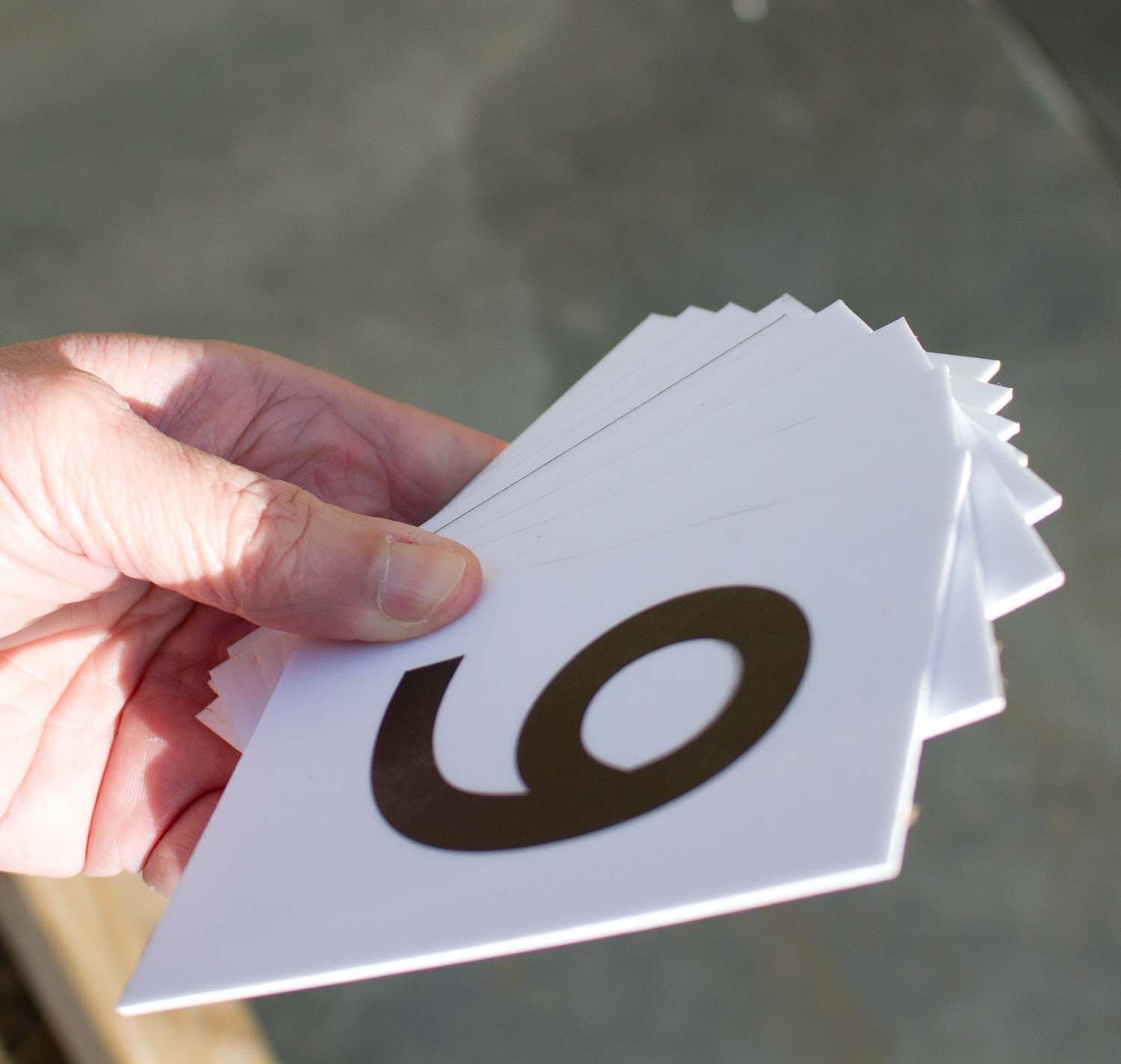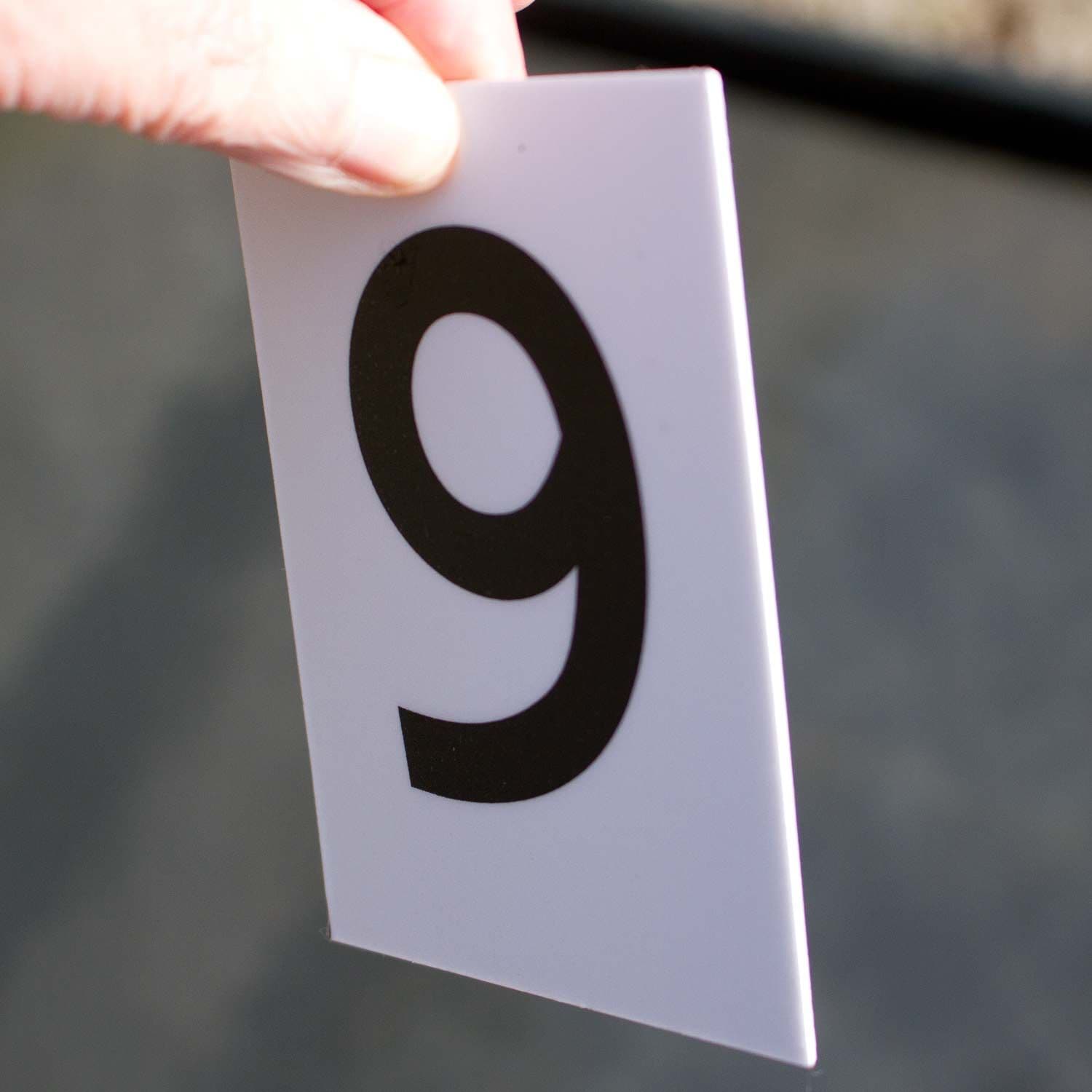 5 sets of numbers. Standard Colours - black text on white background or white text on black background. Other colours are available.