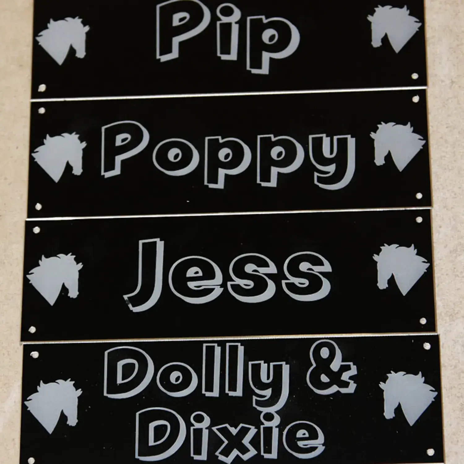 We aim to make your stable name plate just the way you want it - specify any extra details in the box entitled 'notes'