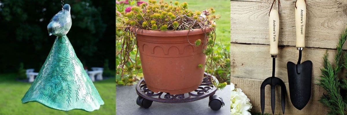 | The Garden Whisperer | Personalised fork & trowel set, bird feeder, plant trolley |