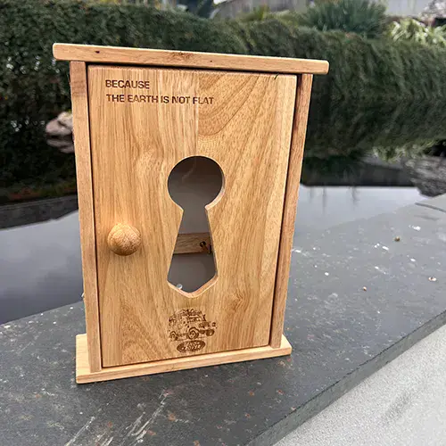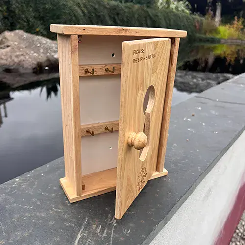 The key boxes are made from Hevea wood and then are either lasered, painted and lasered or can be purchased plain.