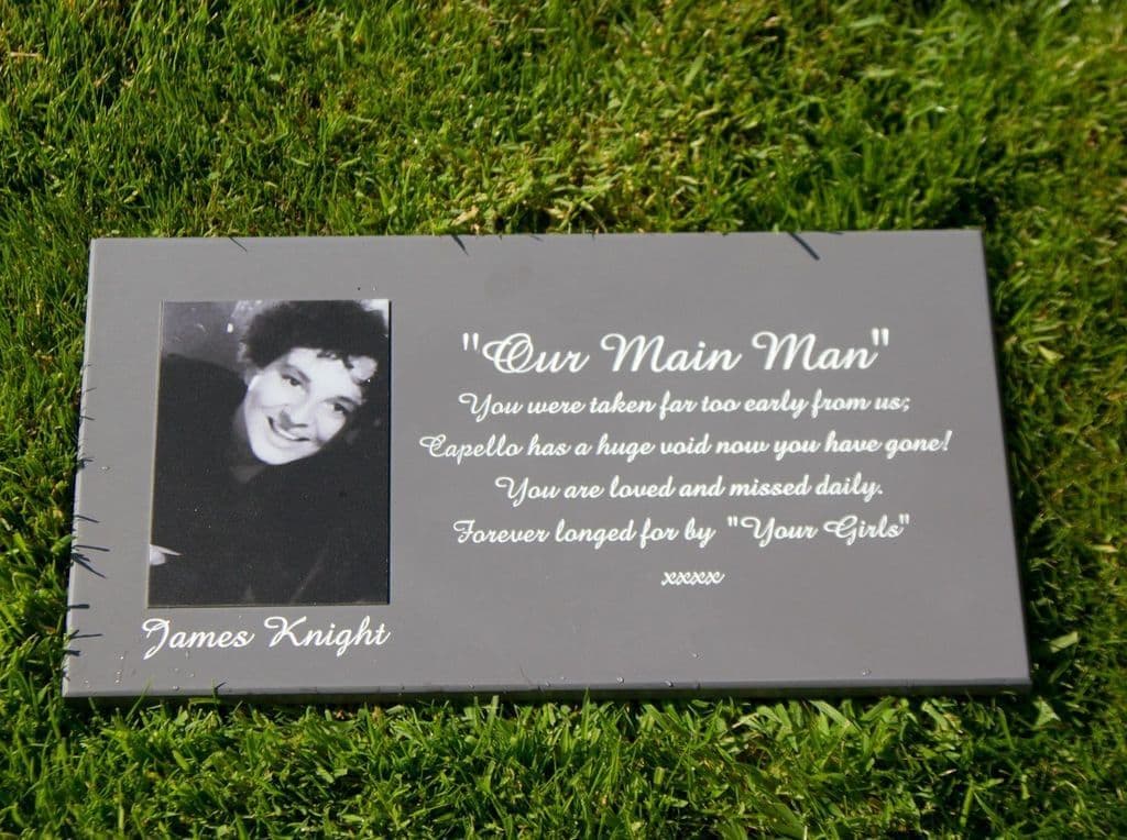 Completely fade-proof as well as being weatherproof are the etched photo memorials on stainless steel. These are available in black / white or sepia.