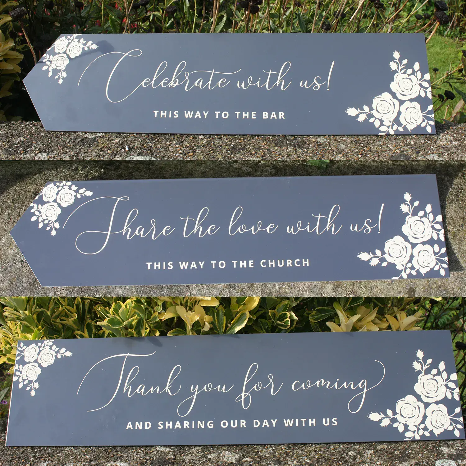 This material is fantastic for directional arrow signs because it is hard, resilient and light, making it a great sign to put all across the place to get your wedding guests to the venue.