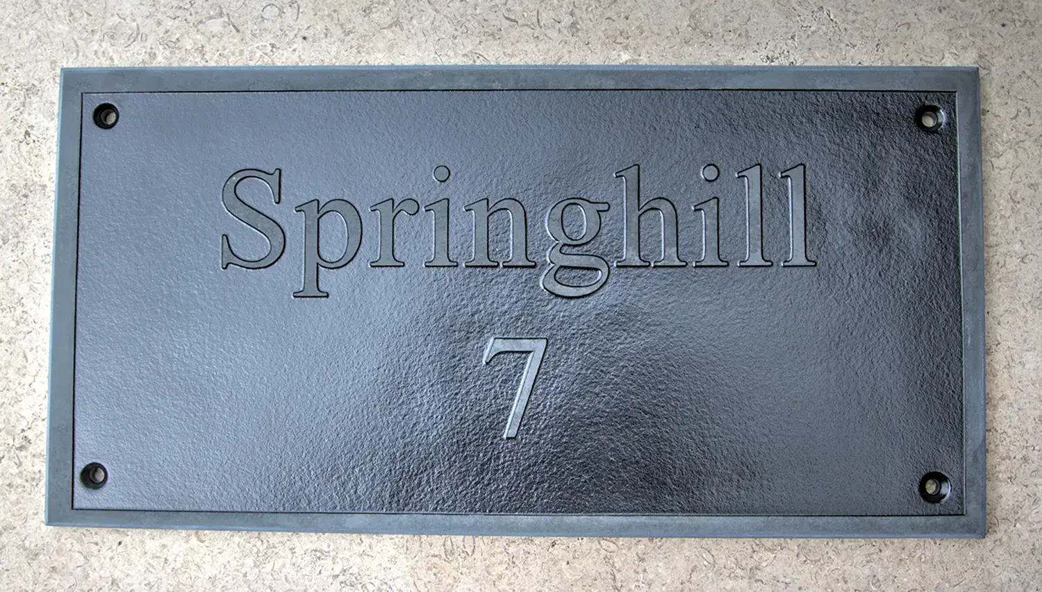 These modern slate signs are a great way to combine a traditional material while adding a modern method. The background of the sign is sand blasted away, leaving the raised lettering. For this sign to be successful you do need to choose a bold style font. The background of the sign can be left natural, which is a lighter grey then the lettering or it can be painted. White is our standard colour but we do have a selection of colours including some Farrow and Ball.